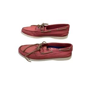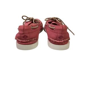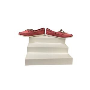 Authentic Original Sperry 2 Eye Boat Shoe. Women's 7M Rose Pink Leather Upper. New Store Display without Box. Signature Razor Cut Wave on Rubber Sole provides enhanced traction on wet or dry surfaces. Imported and Flat Heel. Rawhide Laces.
