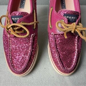 sperry topsider, bahama shoes, pink glitter shoes, boat shoes, size 8M, y2k prep, coastal style, glitter sneakers, raspberry pink, dockside shoes, sparkly shoes, comfy casual, sailing vibes, cottagecore glam, preppy aesthetic, statement shoe, classic sperry, deck shoes, girly footwear, fashion