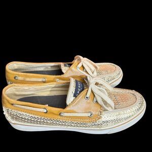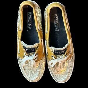 Sperry Topsiders Women’s Gold Sequined Flat Boat Shoes / sz: 8