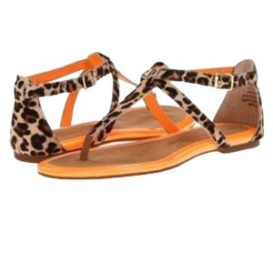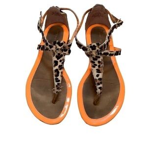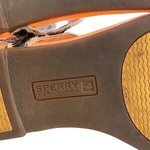 Sperry T-strap Summerlin leopard neon orange sandals animal print leathe…