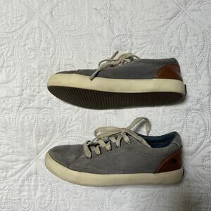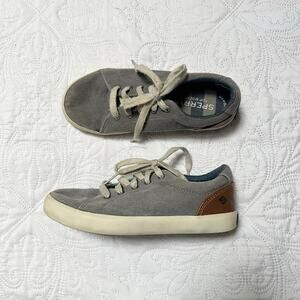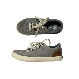 Sperry Tuck LTT sneakers in grey / tan. Lace up low top sneakers in neutral that easily transition from casual to a little more dressed up. Good condition, light overall wear / fade to canvas. Size 1 big kid.