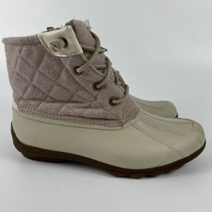 Sperry Waterproof Duck Booties Pink Ivory Women’s 9M Syren Gulf Wool Quilted