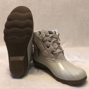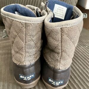 Sperry waterproof duck boots. Insulated rubber winter boots, perfect for the rain and snow. Lace and tie front with side zip closure.