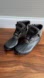 Durable Sperry duck boots with a black and white upper and black rubber sole. Ideal for wet conditions.