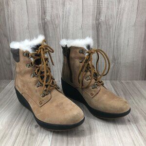 Sperry Top Sider Luca Peak Brown Leather Zip and Lace Up Lined Winter Wedge Ankle Boots Women's Size 6M