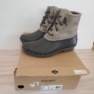 Sperry Women 8.5 M Waterproof Duck Boots Grey Black Slip In Barrel Tied Lacing