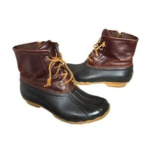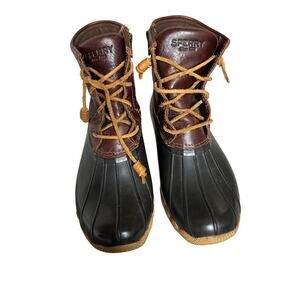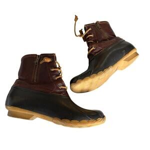 Sperry Size 8 Brown & Black Saltwater Lace Up Ankle Duck Boots Casual