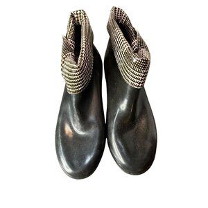 Sperry Women's 9 Top Sider Houndstooth Rubber Rain Ankle Booties Wedge Heel