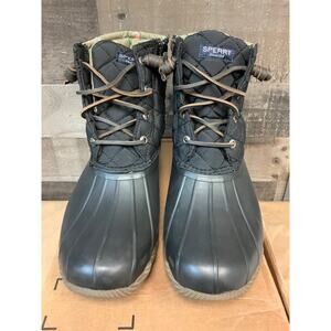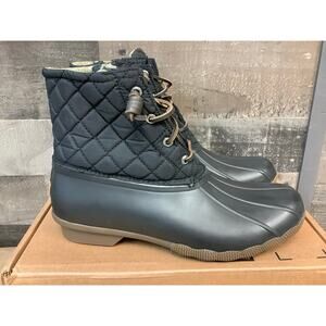 Sperry Womens 9.5 Black Saltwater Quilted Duck Rain Boots Lace Up Outdoor LB3-18