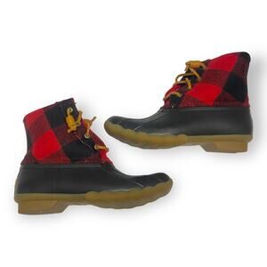 Sperry Womens Boots Size 6M 6 M Saltwater Buffalo Winter Duck Red Black Wool