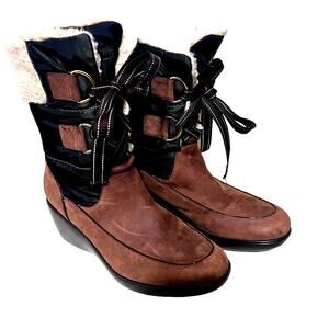 Sperry Women’s Boots Snug Harbor Brown Suede Leather Lace Up Fur Lined 8M