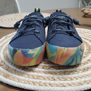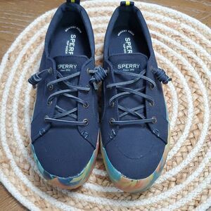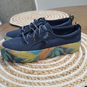 Sperry Women’s Crest Vibe Floral Coral/Navy Platform Sneakers, SIZE 7.5, Pristine condition