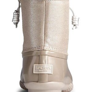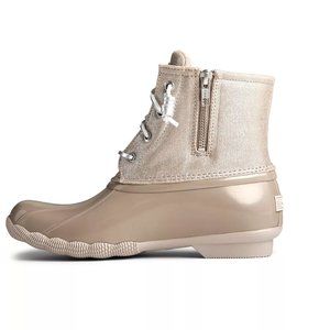 Let this waterproof style take you where others can't go. The Salt Water duck booties by Sperry Top-Sider feature a warm micro-fleece lining inside and contrasting rawhide laces up top.