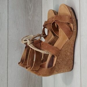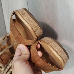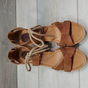 Sperry Womens Leather Lace Up Cork Wedge Sandals shoes sz 9.5M