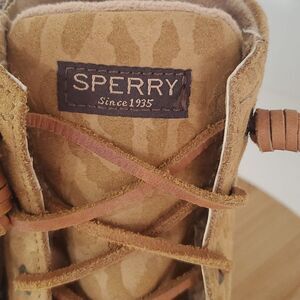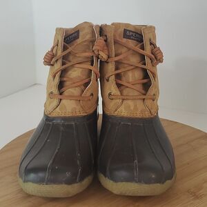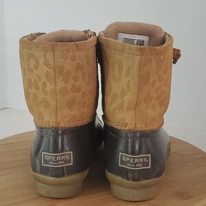 Sperry Women’s Saltwater Dark Brown/Tan Cheetah Print Duck Boots Size 6.5