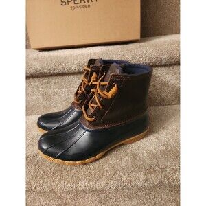 Sperry Women's "Saltwater" Duck Boots in Tan & Navy Colors Size 8.5