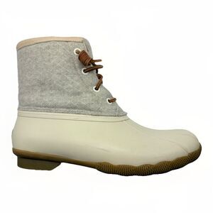 Sperry Women's Saltwater Emboss Wool Boots Waterproof White STS82473 sz 6.5