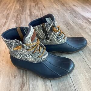 Sperry Womens Saltwater Geometric Print Duck Boots STS97761 Size 7.5 Rain Boots