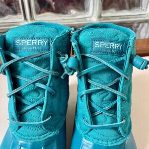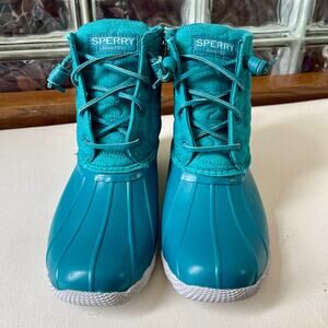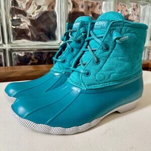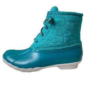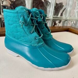 Sperry Women’s Saltwater Nylon Quilted Duck Boots Rain Boots Teal 7.5