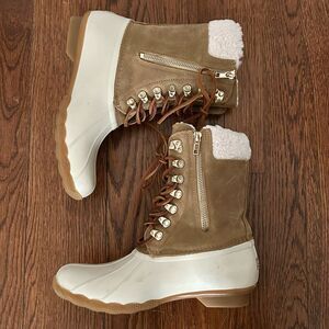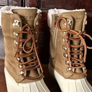 Sperry Womens Saltwater Tan Duck Boots Leather Winter Waterproof Size 8 Preloved