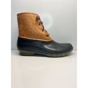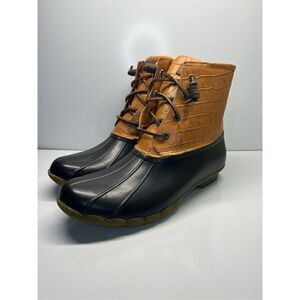 Sperry Women's Saltwater Croc Leather Duck Boot Tan Brown Size 10 New Rain Snow.