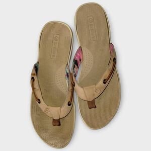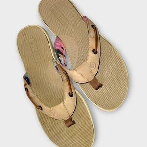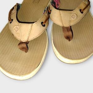 Sperry Womens Seafish Thong Sz 10 Sandals Tan Leather Comfort Cushion Support