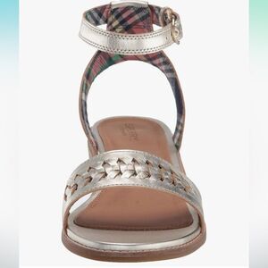 Premium leather uppers with washed plaid lining and woven detailing, in a sophisticated ankle strap silhouette memory foam leather footbed featuring non-marking rubber outsole with molded Wave-Siping for ultimate no-slip traction