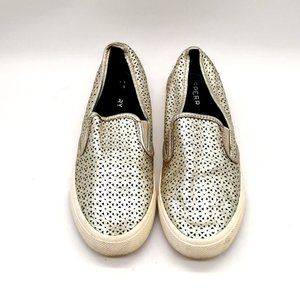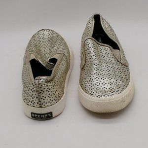 Sperry Womens Sneaker Gold Perforated Slip On Loafer Side Elastic Insets 9