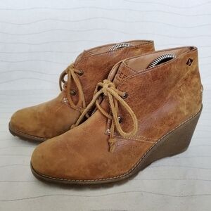 Sperry Womens Stella Prow Ankle Boots Booties StS 96942 Brown Leather Wedge Sz 8