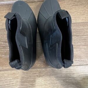 All black pull on Chelsea style rain boots with duck style upper