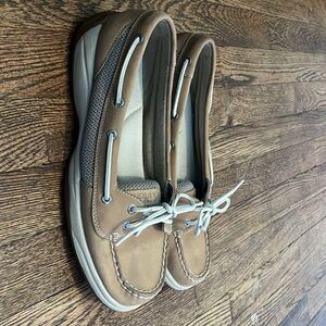 Step into comfort and style with Sperry's women's tan boat shoes. Perfect for casual outings, these shoes offer a classic look with durable construction.