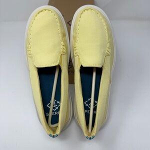 Sperry shoes, Sperry loafers, yellow slip-on shoes, casual loafers, canvas shoes, spring flats, summer loafers, comfort shoes, women’s Sperry 7.5, casual walking shoes, Sperry casual slip-ons, nautical shoes