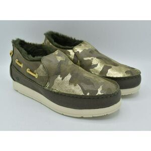Sperry Womens 9.5 Moc-Sider Olive Metallic Camo Microfleece Lined Slip On Shoes