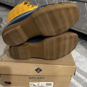 Keep your feet warm and stylish with these Sperry boots. Featuring a vibrant yellow and blue design, these boots are perfect for any adventure.