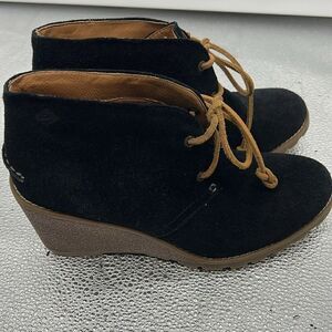 Sperry black Stella Prow ankle wedge booties size 7.5
