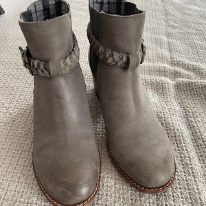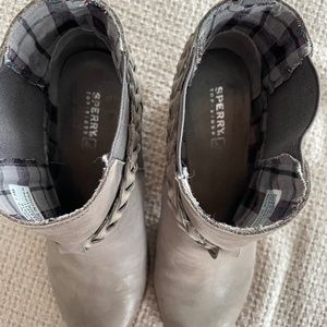 Sperry block heel ankle booties in gray leather. Lightly worn. Size 7.5