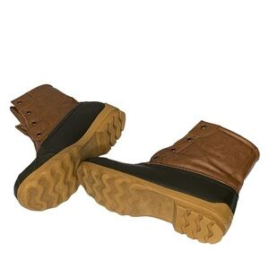 Sperry Boys Port Boot in brown. Missing laces. A few scuffs from wearing shown in pics. Perfect for those outdoor adventures! Snow, rain, outdoors. Size 6