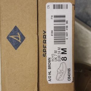 gently used Sperry shoes for boys. Brown. velcro closure.
