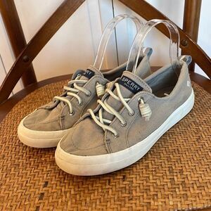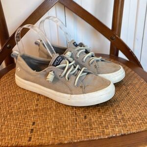 Sperry crest vibe grey sneakers with suede shoelace gently worn condition!