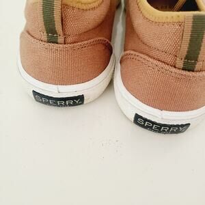 Sperry top sider lace up memory foam shoes. Tan fabric. Great used condition. Size 4.5 big kid.