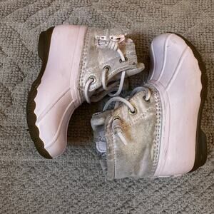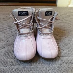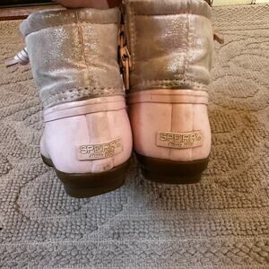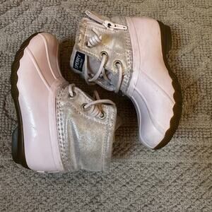 Sperry pink metallic kids rubber sole saltwater duck boot SIZE 8