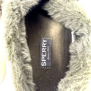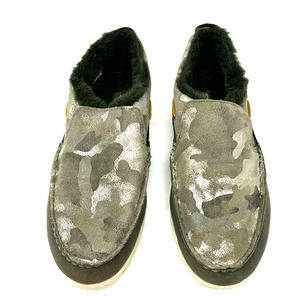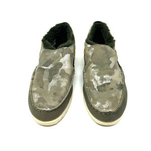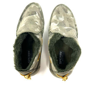 Sperry size 7.5 STS86941 Olive camo fur lined slip on shoes leather D21-61971