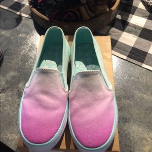 Super cute and stylish Sperry deck shoes. The ombré makes these so different and fun. My 10 year old LOVED them the sadly just didn’t fit. NWT and box