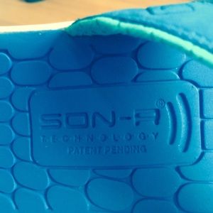 Blue sperry flip flops, never warn, new with tag. The inside id the strap is cloth, very comfortable. Nautical look with leather accents on strap. Great for boating, beaching, and more!!