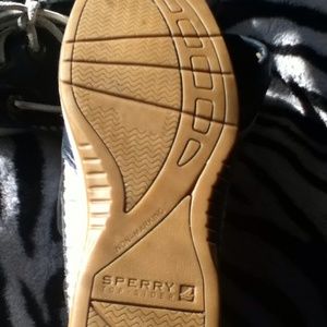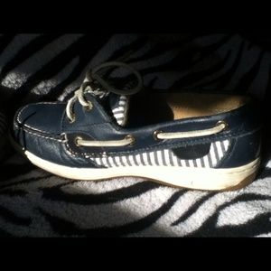 Beautiful navy blue and white leather with nautical blue and white cloth. Worn very little.