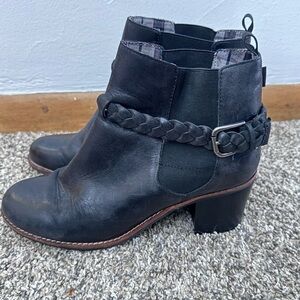 Sperry womans Liberty Chelsea boot heeled black leather braided detail Size 9.5