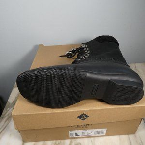 Sperry womens Saltwater Tall Leather Cozy Rain Boot, Black, 7 US