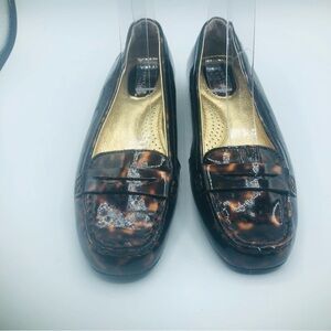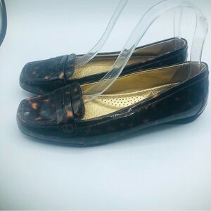 Sperry women’s brown and gold leopard pattern loafers size 6M in excellent preowned condition