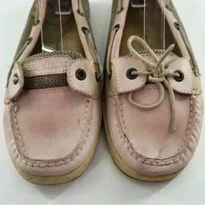 Sperry womens flats size 8.5 pink tan leather boat shoes preppy nautical