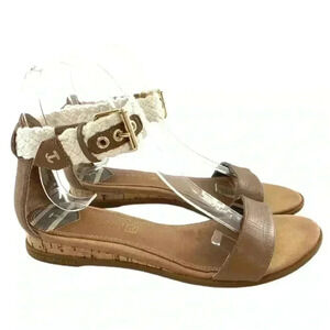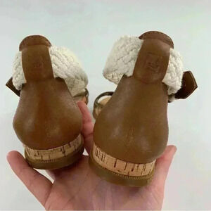 Sperry womens sandals size 5.5 brown leather nautical ankle strap cork wedges